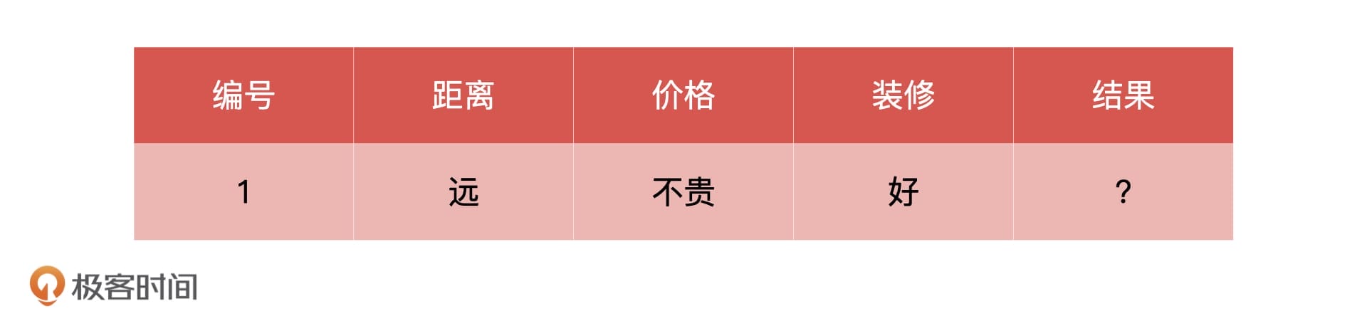 我们先看距离,因为这个房子距离公司远,所以根据上面的决策树,我们就能直接得出结论:不租。但是,假设我们的决策树不是用距离作为根节点,而是用价格作为根节点的话,结果会不会不一样呢?