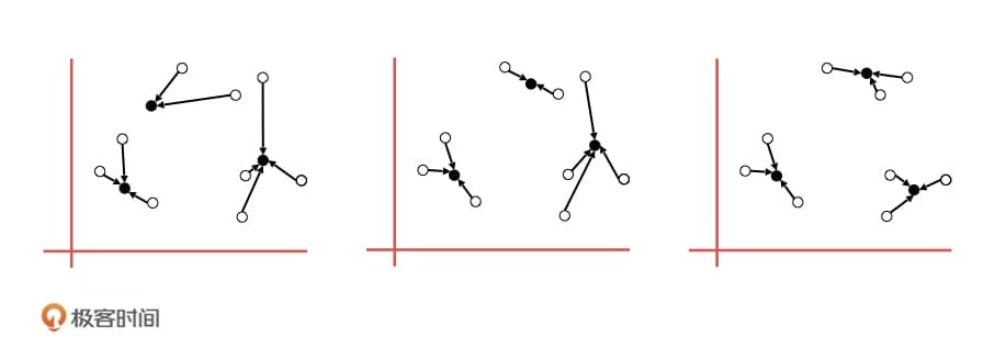 不过,因为第 8 讲中的层次聚类算法在实际工业中的应用并不多。所以今天,我们就来讲一种应用最广泛的聚类算法,它就是 K 均值( K-means )算法。