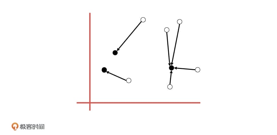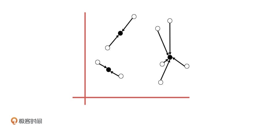 如果把这个故事的主角换成机器学习中的数据样本,我们是不是就可以快速给它们进行分类了呢?比如,当几个样本非常相似的时候,我们就把它们归为一类,再用这几个样本的中心位置表示这个类别,以方便其他相似样本的加入。