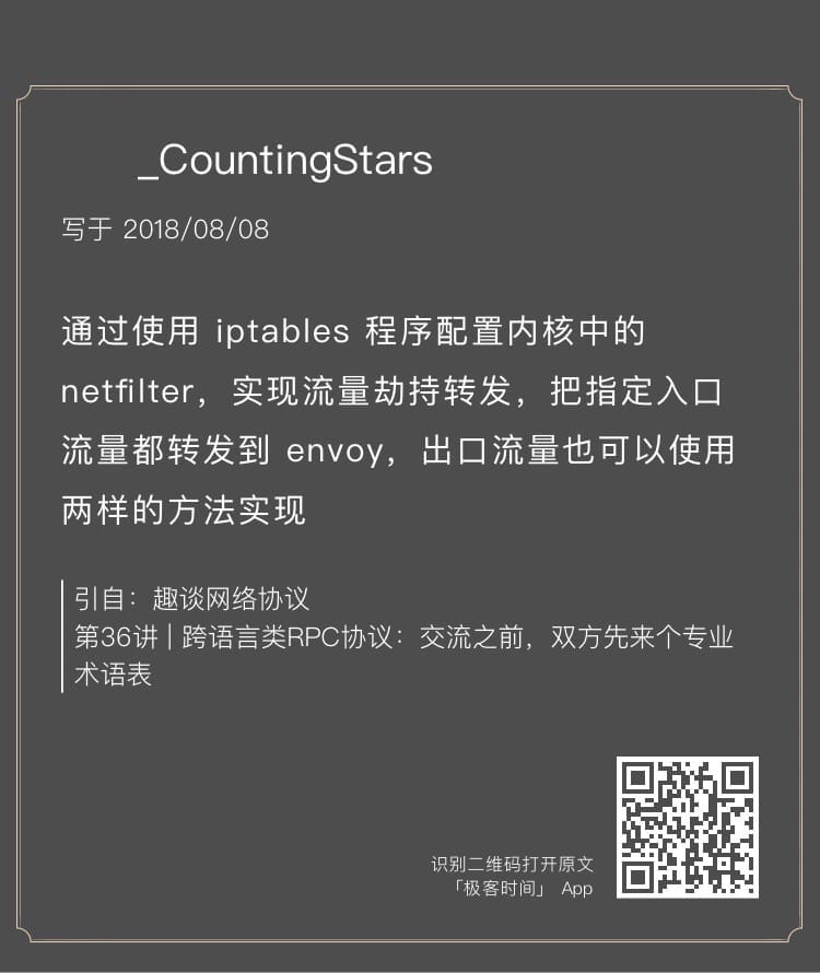在讲述Service Mesh的时候,我们说了,希望Envoy能够在服务不感知的情况下,将服务之间的调用全部代理了,你知道怎么做到这一点吗?