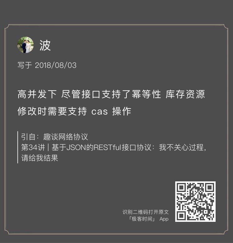 在讨论RESTful模型的时候,举了一个库存的例子,但是这种方法有很大问题,那你知道为什么要这样设计吗?