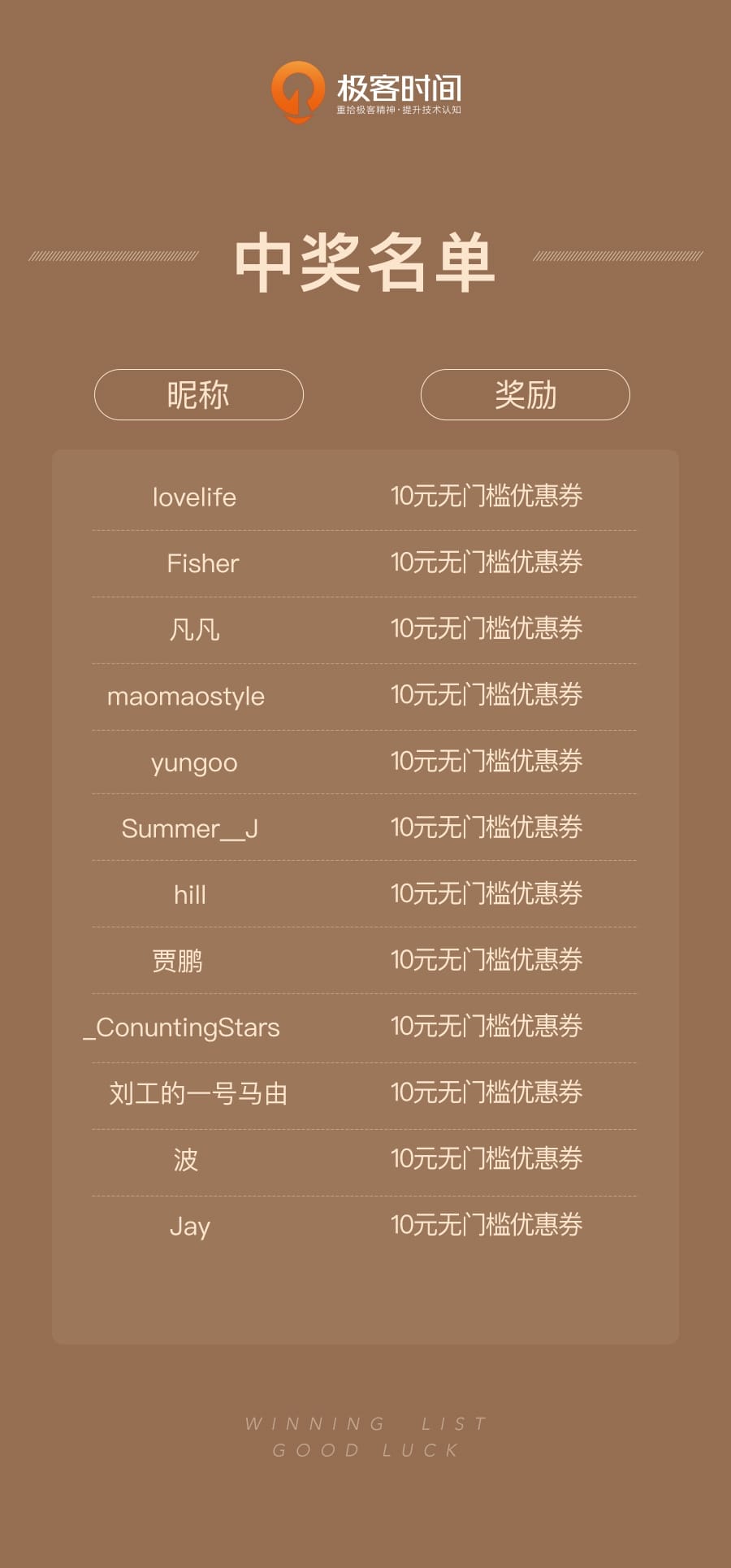 感谢第22讲至第36讲中对内容有深度思考和提出问题的同学。我会为你们送上奖励礼券和知识图谱。(稍后运营同学会发送短信通知。)