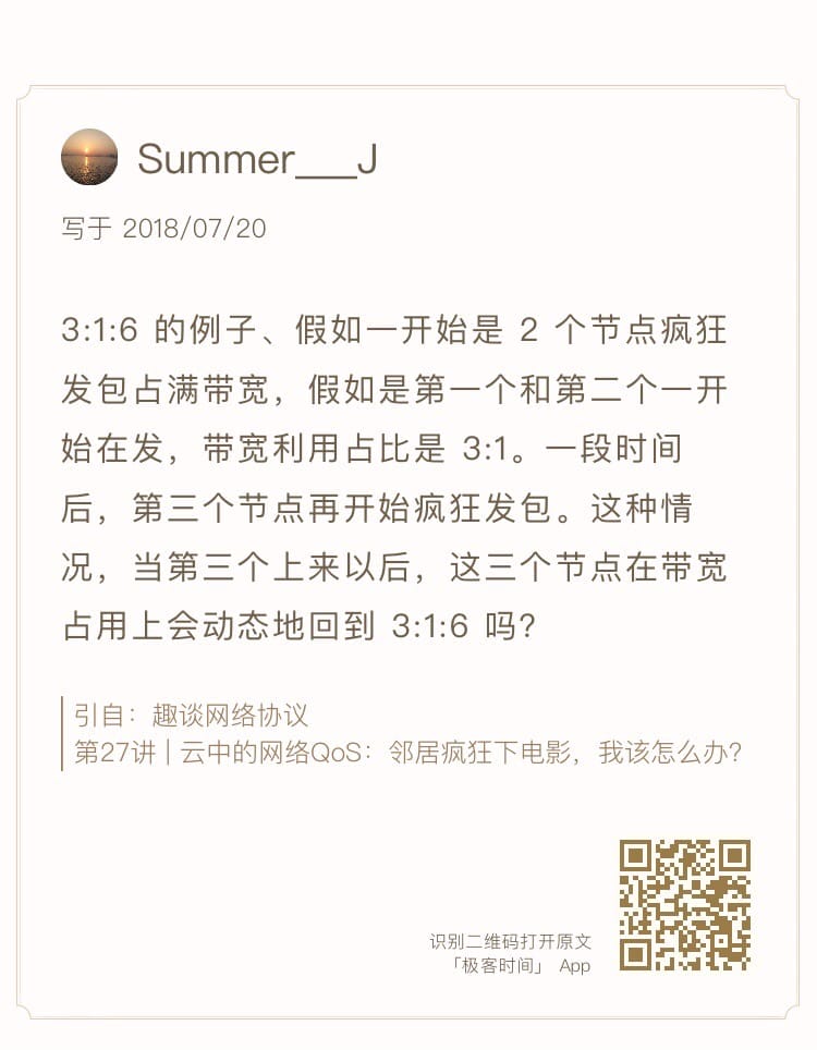 在时间3的时候,将0的发送停止,A不再访问网页了,红色的线归零,A的总速率下来了,剩余的流量按照比例分给了蓝色的和绿色的线,也即分给了A发邮件和B上网。