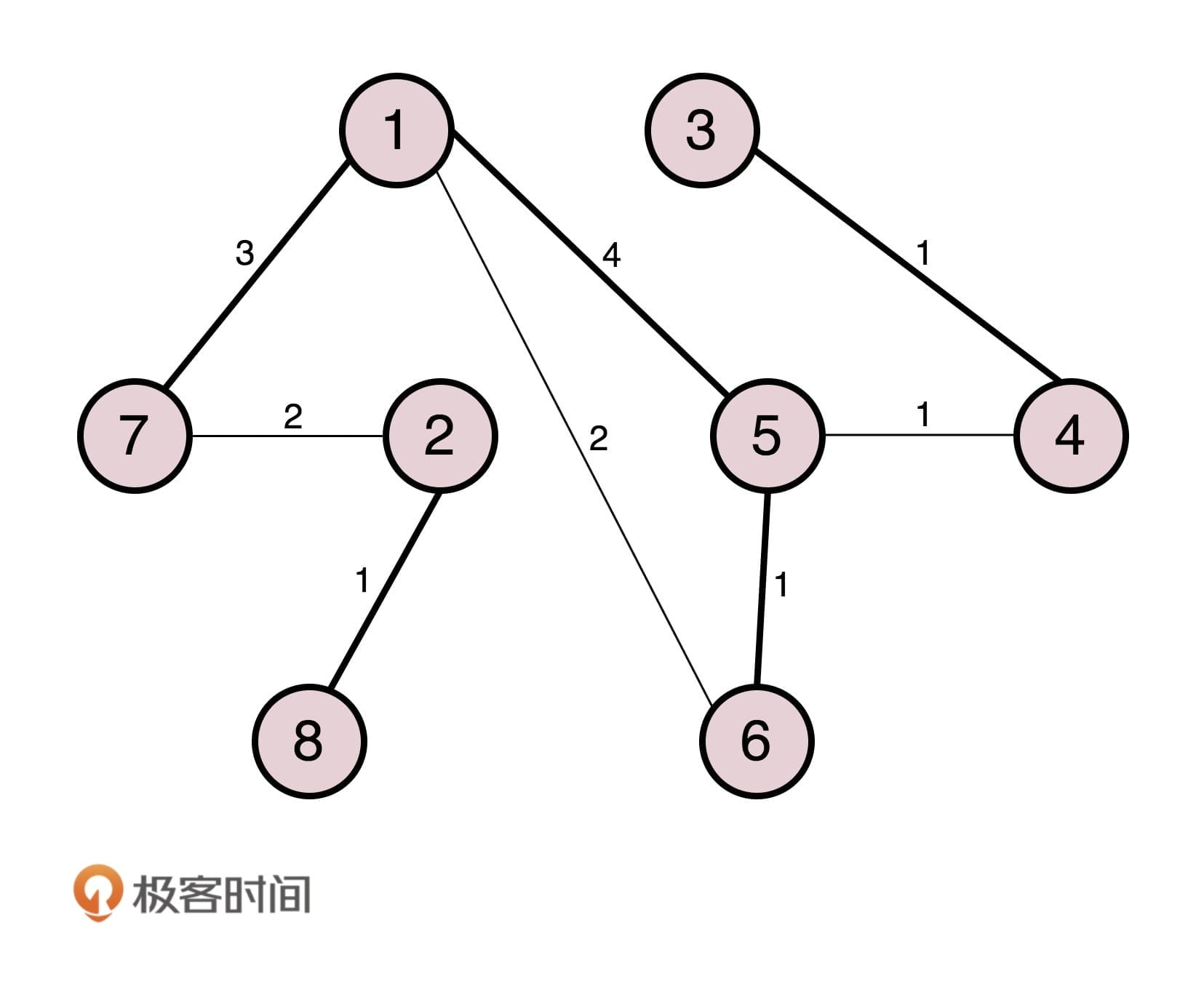 同门相遇还可以是小弟相遇。这个时候就要比较谁和掌门的关系近,当然近的当大哥。刚才5和6同时汇报给1了,后来5和6在比较功夫的时候发现,5你直接汇报给1距离是4,如果5汇报给6再汇报给1,距离只有2+1=3,所以5干脆拜6为上司。