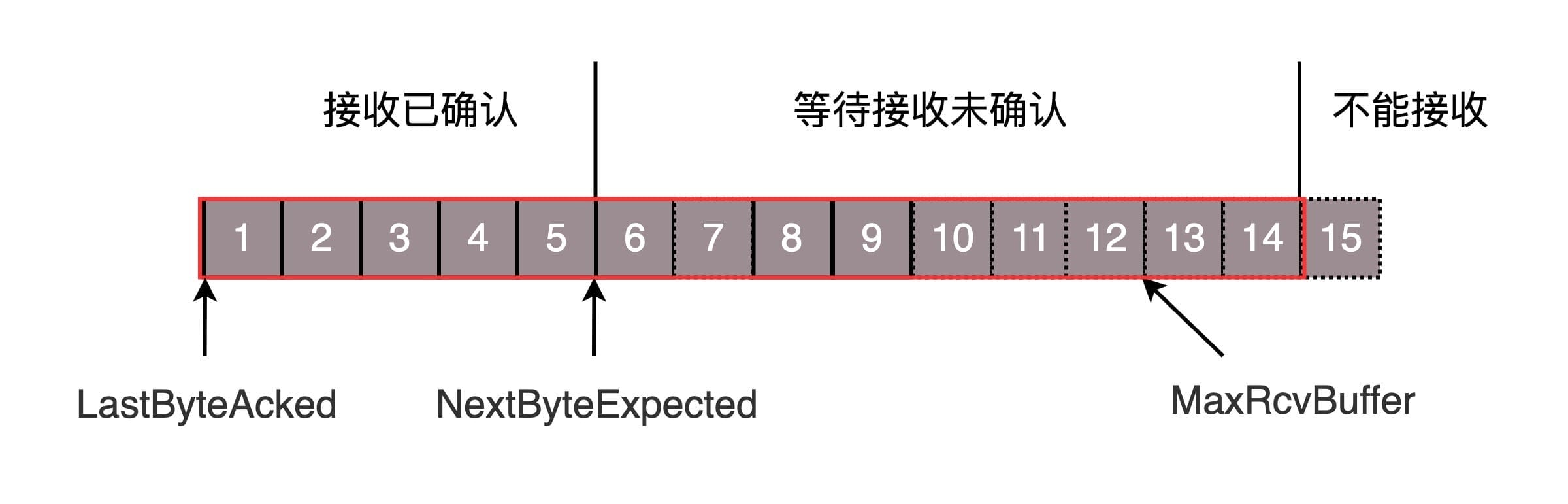 其中第二部分里面,由于受到的包可能不是顺序的,会出现空档,只有和第一部分连续的,可以马上进行回复,中间空着的部分需要等待,哪怕后面的已经来了。