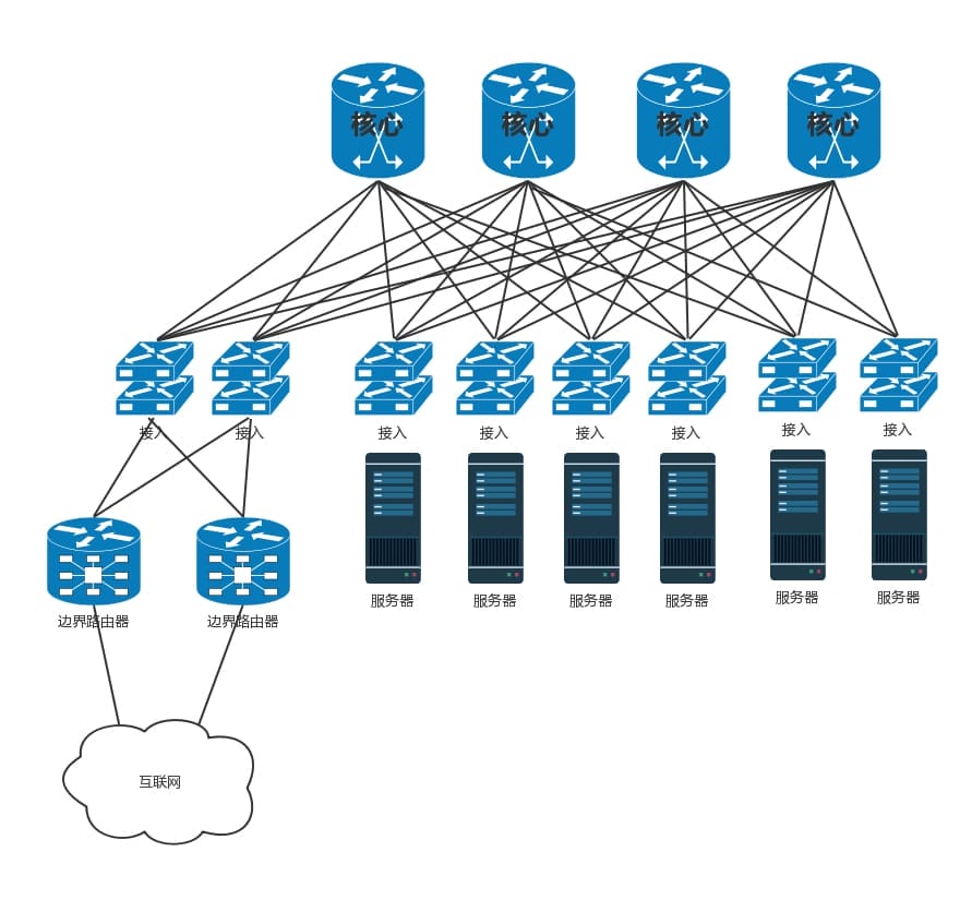 于是整个数据中心的网络如下图所示。