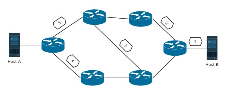 因为IP网络从设计的时候,就认为是不可靠的,所以即使同一个连接,也可能选择不同的道路,这样的好处是,一条道路崩溃的时候,总有其他的路可以走。当然,带来的代价就是,不断的路由查找,效率比较差。