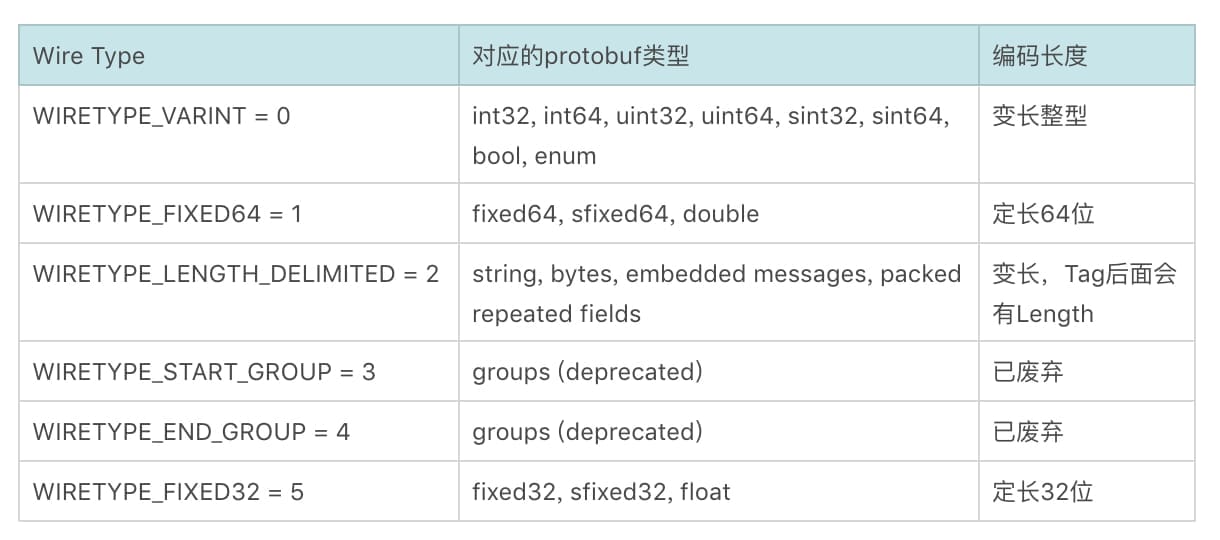 其中Tag = (field_num << 3) | wire_type。field_num就是在proto文件中,给每个字段指定唯一的数字标识,而wire_type用于标识后面的数据类型。
