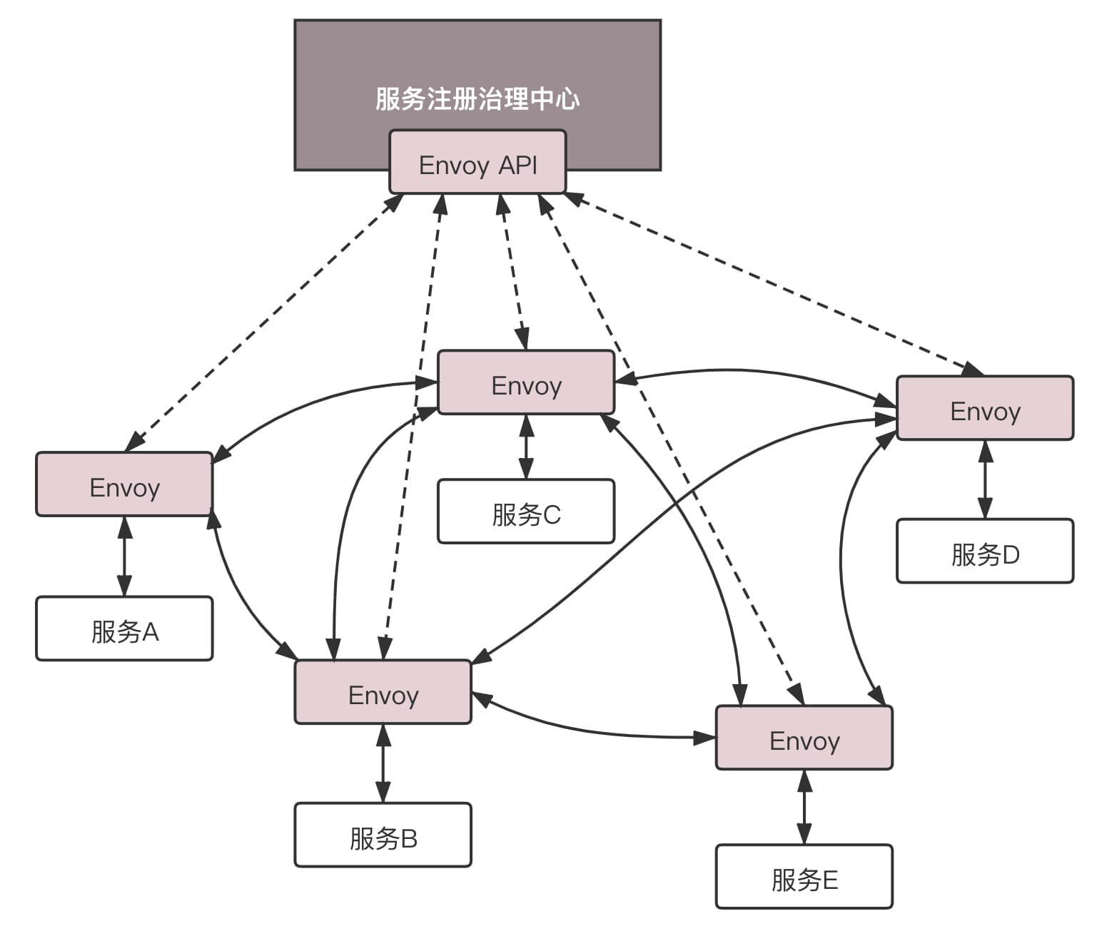 Envoy这么牛,是不是能够将服务之间的相互调用全部由它代理?如果这样,服务也不用像Dubbo,或者Spring Cloud一样,自己感知到注册中心,自己注册,自己治理,对应用干预比较大。