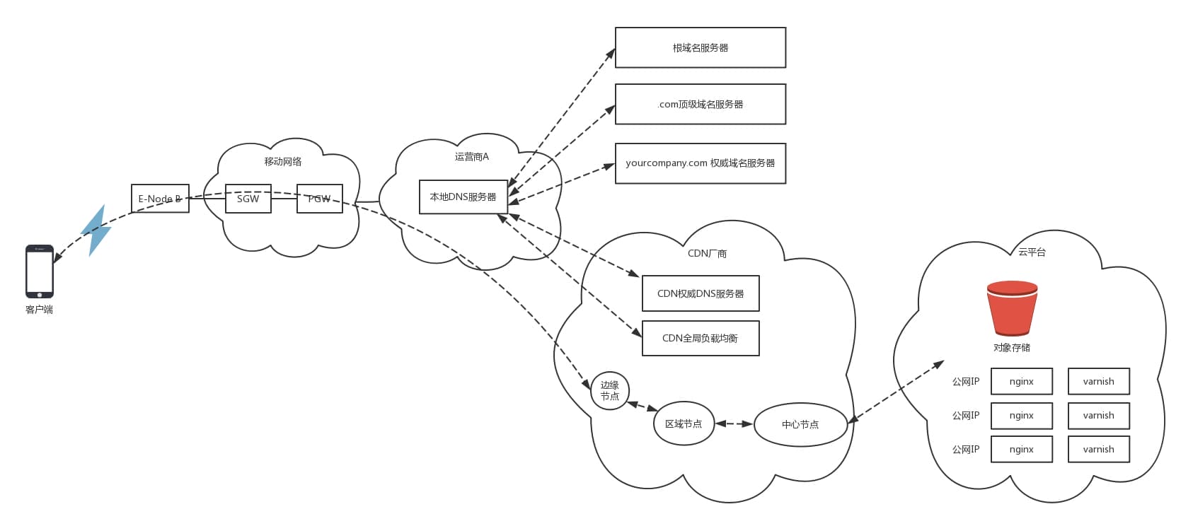 当本地DNS服务器拿到这个新的域名时,需要继续解析这个新的域名。这个时候,再访问的时候就不是原来的权威DNS服务器了,而是 cdn.com 的权威DNS服务器。这是CDN自己的权威DNS服务器。