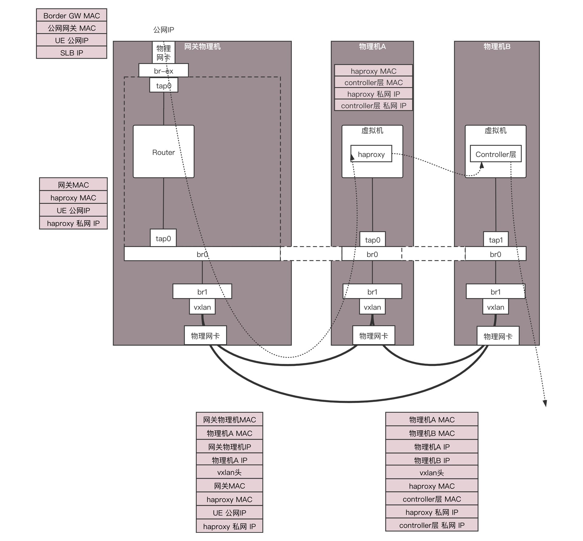 外层源MAC:物理机A的MAC;