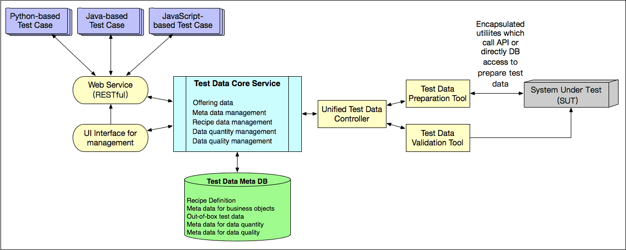由此,测试数据准备工作自然而然地就发展到了平台化阶段。我们把这种统一提供各类测试数据的Restful API服务,称为“统一测试数据平台”。