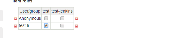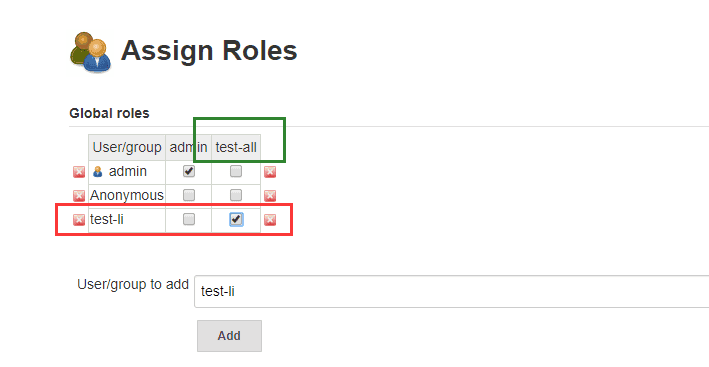 test-all 角色对Jenkins面板具有读取权限,保存后,再去从新分配权限,如下所示: