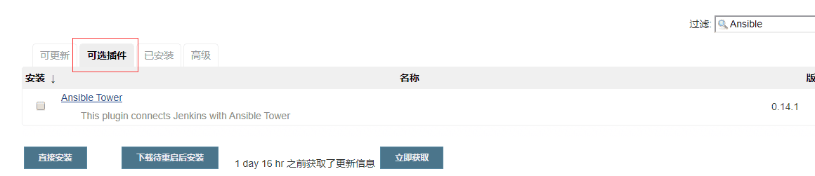 搜索框输入关键字,就会列出包含该关键字的插件,由于我已经安装了ansible的插件,所以这里就不会列出已安装的。