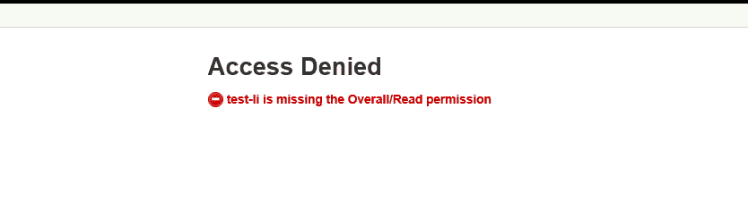 给test-li用户分配一个具有可以读取jenkins面板的权限,这样就可以使用该用户进行正常工作了。如下所示: