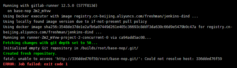 在使用docker方式安装gitlab时,遇到一个问题(使用vm默认没有此问题),因为映射的本地端口和gitlab内部端口不同,在使用gitlab-runner容器拉取应用代码的时候出现网络不通的问题,如下所示: