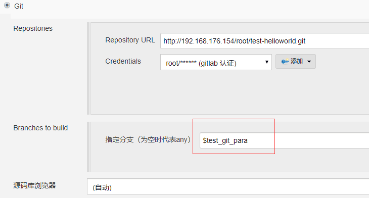 此时在设置”源码管理”的时候需要设置分支为上面创建的参数变量。