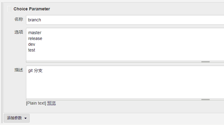 选择参数,在jenkins中定义一个参数值列表,构建时通过选定的值传给参数,并被其他步骤引用。