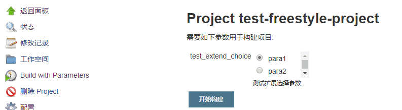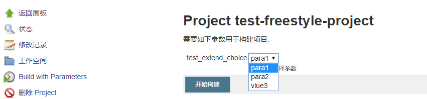 首先看一下Single Select类型,选择该类型后,点击构建时多个参数会组成一个下拉列表。