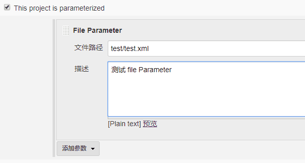 文件参数用于从浏览器表单提交中接受一个文件,并作为构建参数。上传后的文件将会放在当前工作空间($WORKSPACE)中指定的位置,你可以在构建任务中访问并使用它。
