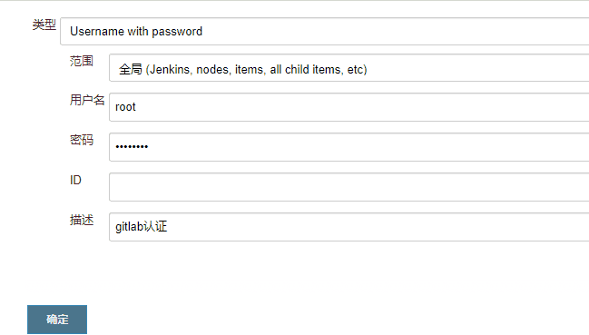 这里需要说一下ID参数,ID参数的值可以自定义,如果不填写,jenkins会自动生成一个ID,至于如何使用这个凭据,将在下面的”创建jenkins项目”小节中介绍。
