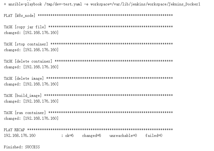 上面示例使用ansible-playbook将在jenkins里执行的命令进行了重写,拉取代码和代码编译配置没有变。