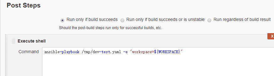 ansible-playbook -i /etc/ansible/hosts /home/single-playbook-helloworld.yaml -e "workspace=${WORKSPACE} host=192.168.176.160 project_name=hello_world build_num=$BUILD_ID"