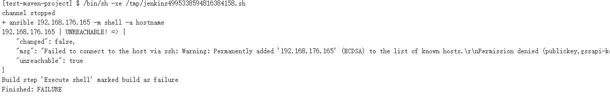 导致以上报错的出现的原因有两种,一种是真正意义上的命令找不到(或者到主机网络不可达,主机认证失败);另一种就是Jenkins用户权限问题导致的,这里简单说明一下:第一种情况可能不多见,因为安装好ansible后,默认就配好了ansible的全局环境变量;至于主机不可达与主机认证,相信大家都会测试,在服务器终端执行一下命令就知道了,这里不多说,主要说一下Jenkins的权限问题。