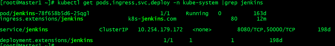 $ kubectl get pods,ingress,svc,deploy -n kube-system |grep jenkins