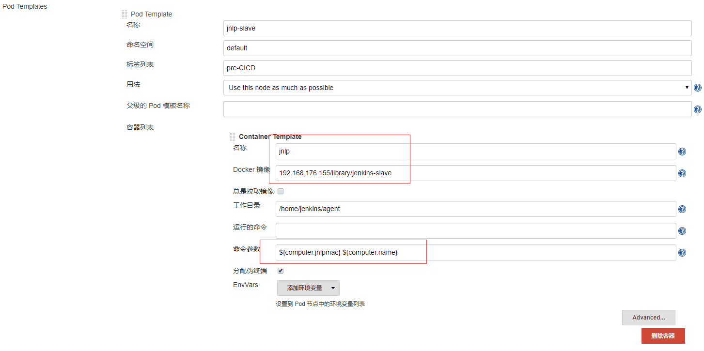 1、 如果name参数配置的值为jnlp,就表示使用基于Jnlp方式的jnlp-agent自启动连接Jenkins master。这就需要保证image参数指定的镜像里包含启动jnlp-agent的命令(官方提供的镜像启动命令为jenkins-slave(旧版本)或者jenkins-agent(新版本))命令,同时需要指定启动参数${computer.jnlpmac} ${computer.name;如果指定的镜像里没有这些命令,或者没有启动参数,动态pod就会创建失败。