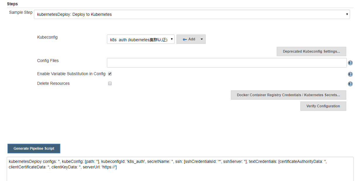 kubernetesDeploy(kubeconfigId: 'k8s_auth', //必须项