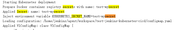 kubernetesDeploy方法的dockerCredentials参数用于对docker私有仓库认证,如果secretName参数的值没有指定,则生成一个唯一的secret名称并以KUBERNETES_SECRET_NAME作为环境变量名被资源对象引用;如果设置了secretName,则更新这个secret;然后通过开启变量替换就可以被在secretNamespace指定的命名空间内创建的pod引用。
