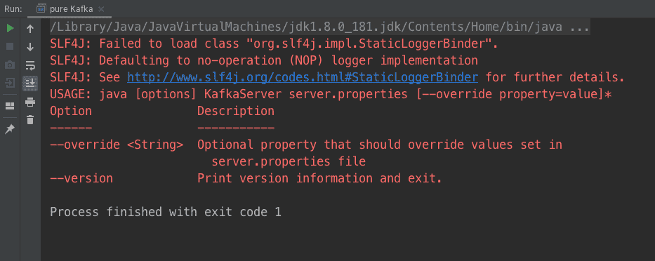 这就是无参执行Kafka主文件的运行结果。通过这段输出,我们能够学会启动Broker所必需的参数,即指定server.properties文件的地址。这也是启动Kafka Broker的标准命令。