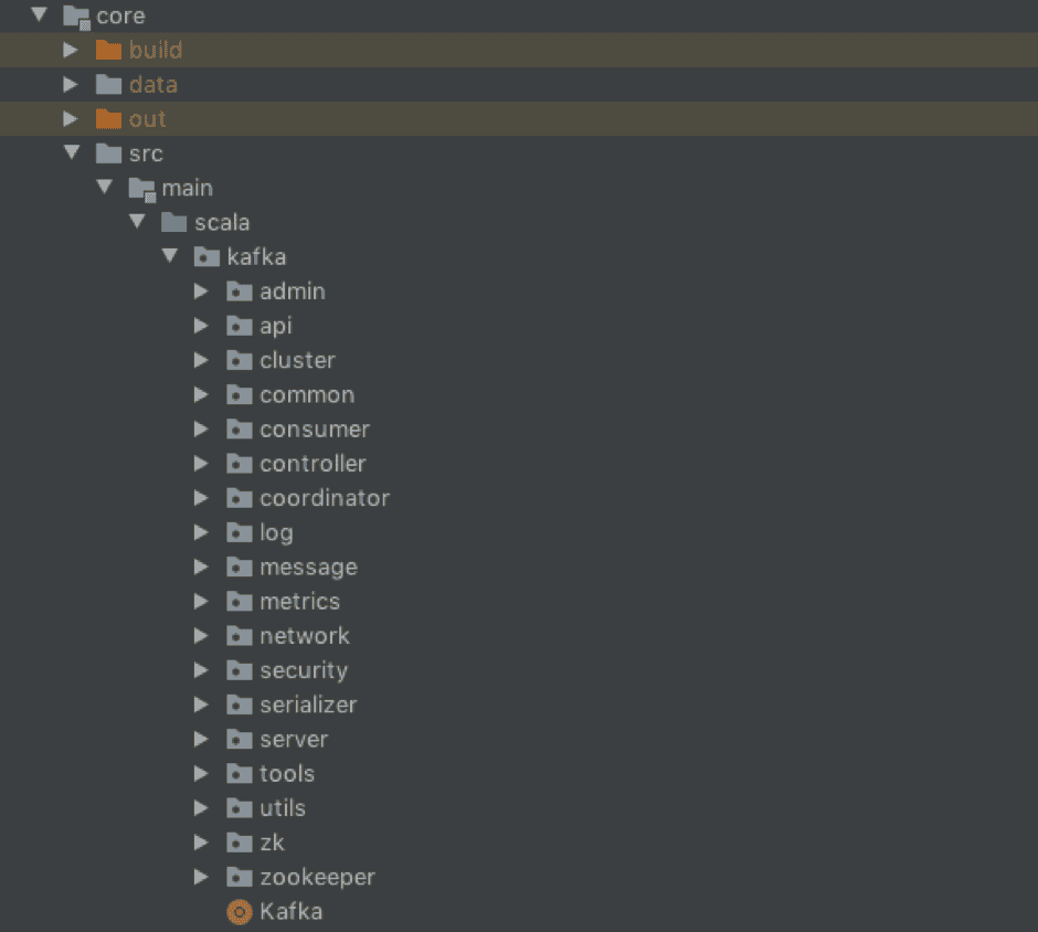 在开篇词中我也说了,这个课程会聚焦于讲解Kafka Broker端源代码。因此,在正式学习这部分源码之前,我先给你简单介绍一下Broker端源码的组织架构。下图展示了Kafka core包的代码架构: