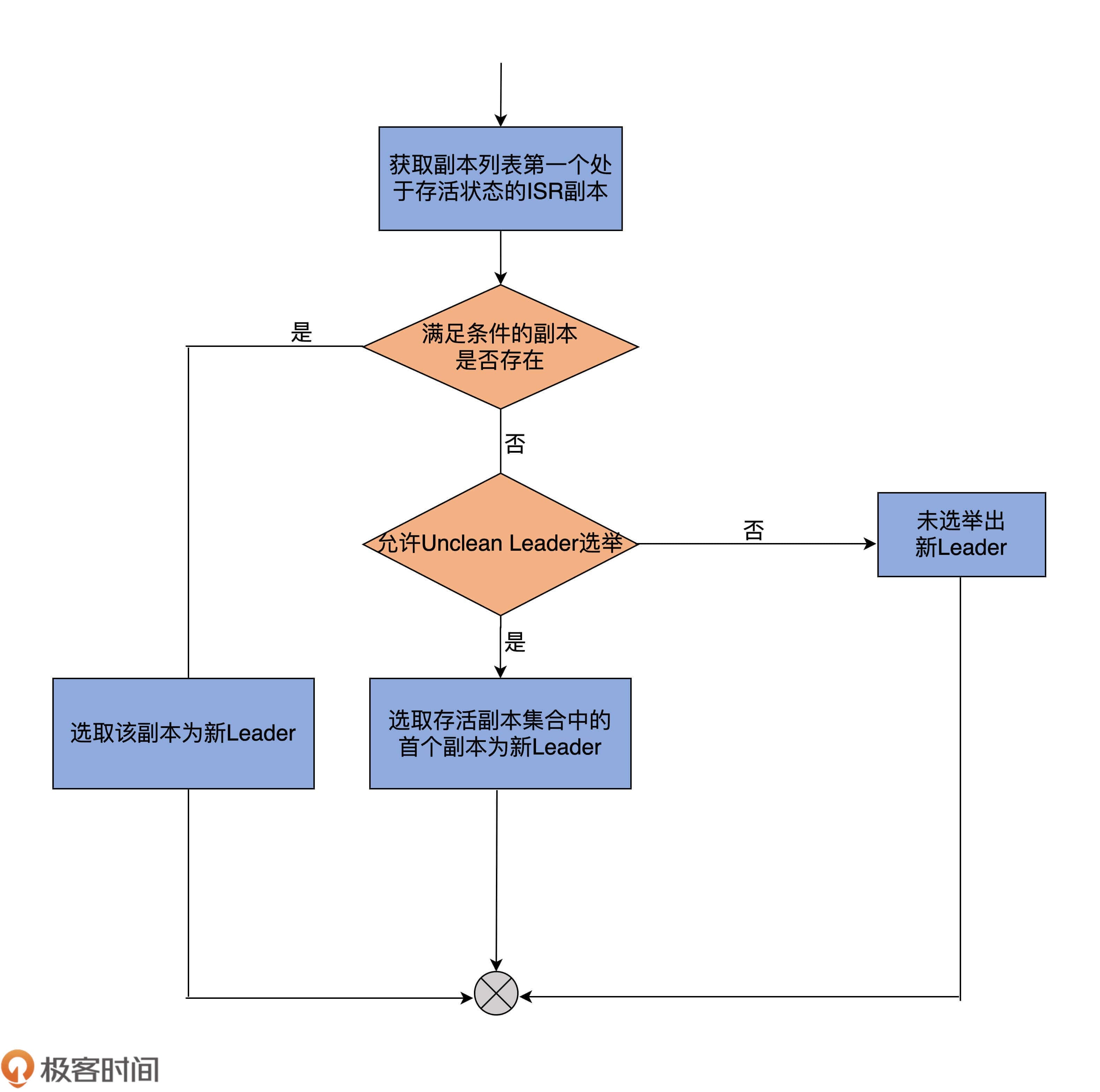 倘若无法找到这样的副本,代码会检查是否开启了Unclean Leader选举:如果开启了,则降低标准,只要满足上面第一个条件即可;如果未开启,则本次Leader选举失败,没有新Leader被选出。