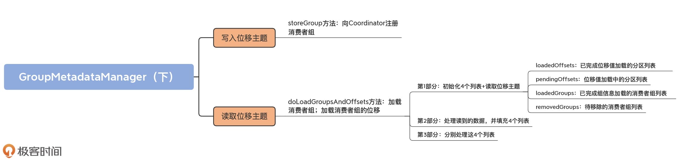 至此,doLoadGroupsAndOffsets方法的逻辑全部完成。经过调用该方法后,Coordinator成功地读取了位移主题目标分区下的数据,并把它们填充到了消费者组元数据缓存中。