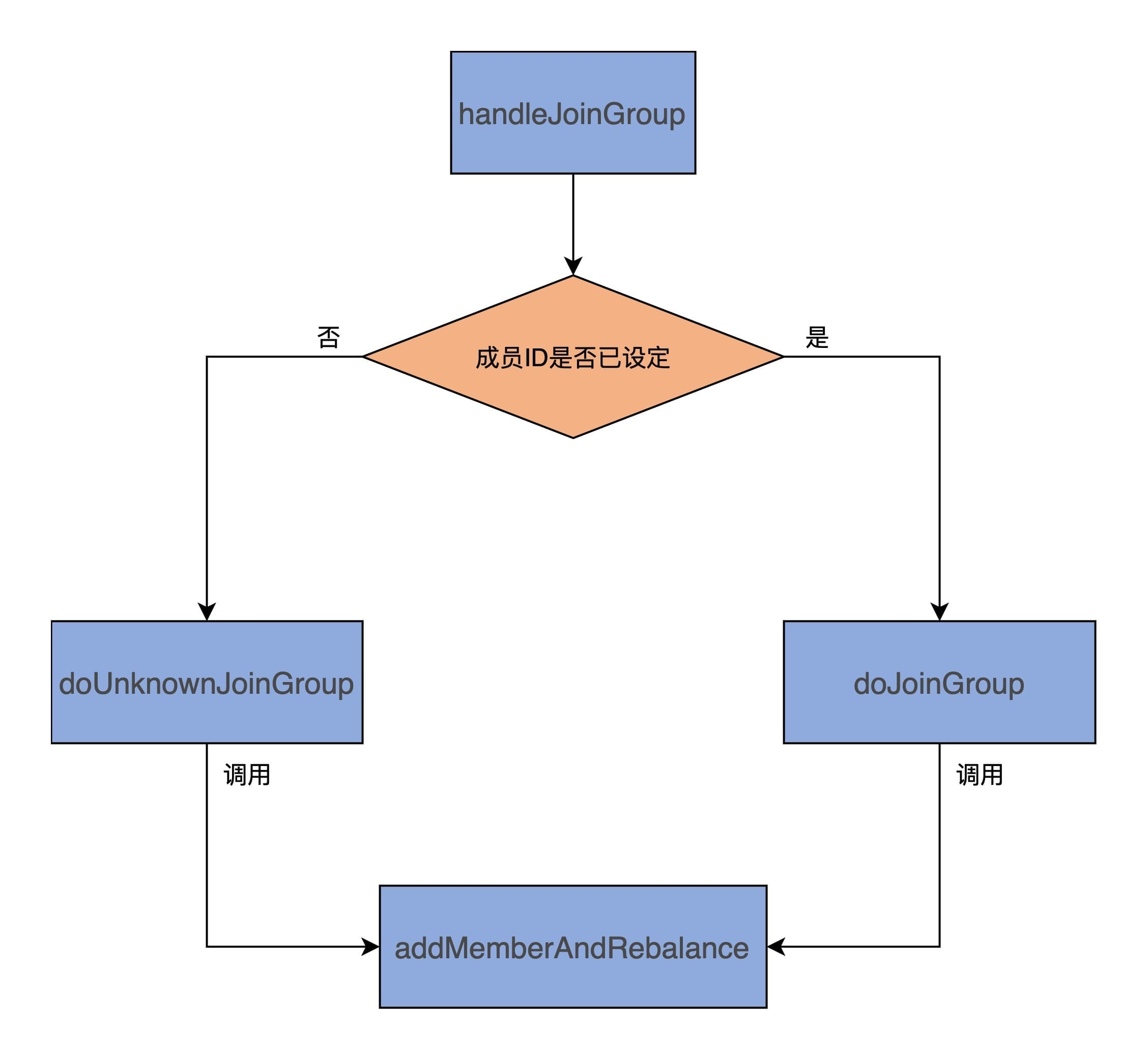 倘若成员不被批准入组,那么,代码需要将该成员从元数据缓存中移除,同时封装“组已满员”的异常,并调用回调函数返回;如果成员被批准入组,则根据Member ID是否为空,就执行doUnknownJoinGroup或doJoinGroup方法执行加入组的逻辑。