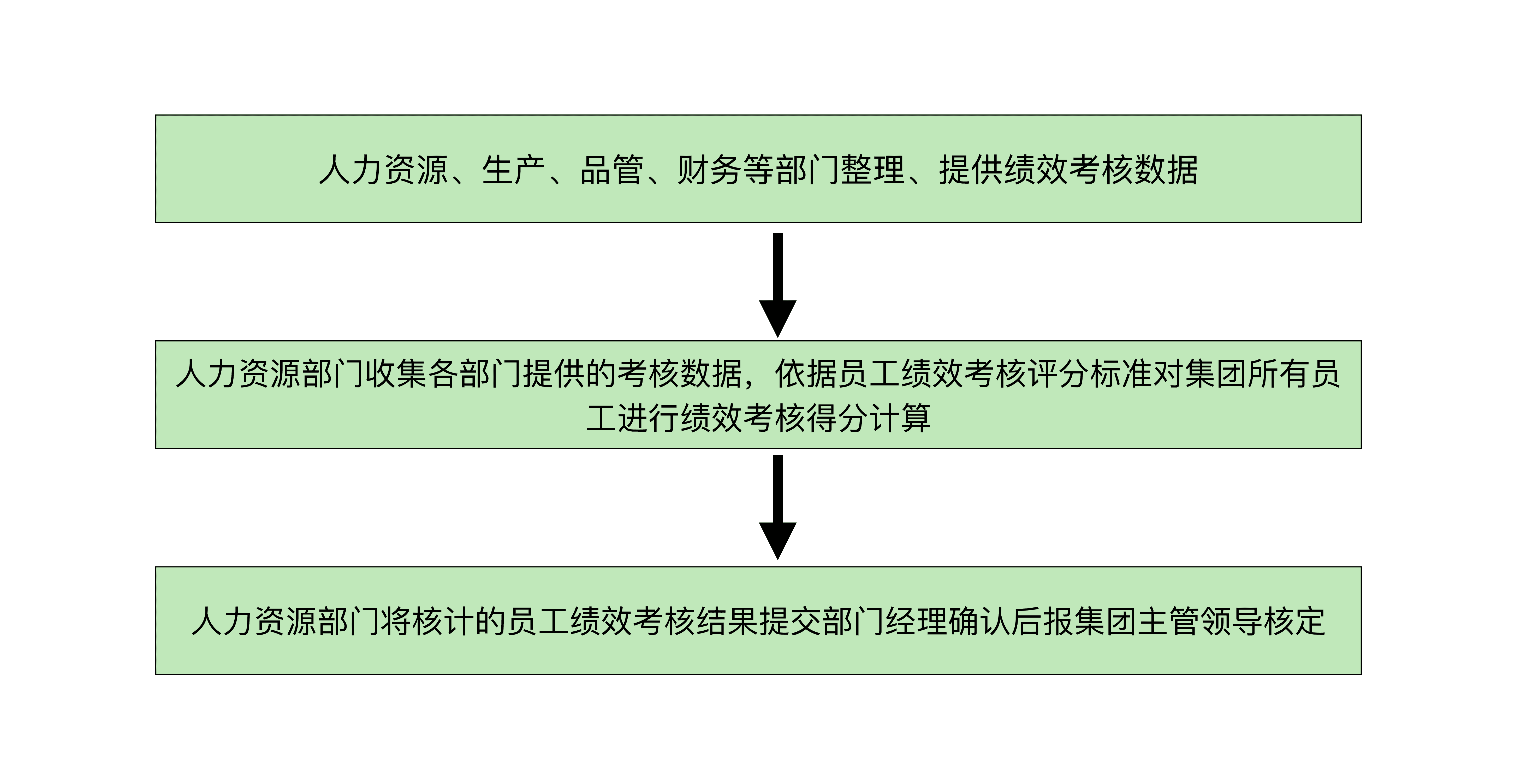 人力资源部门收集各部门提供的考核数据,依据员工绩效考核评分标准对集团所有员工进行绩效考核得分计算。