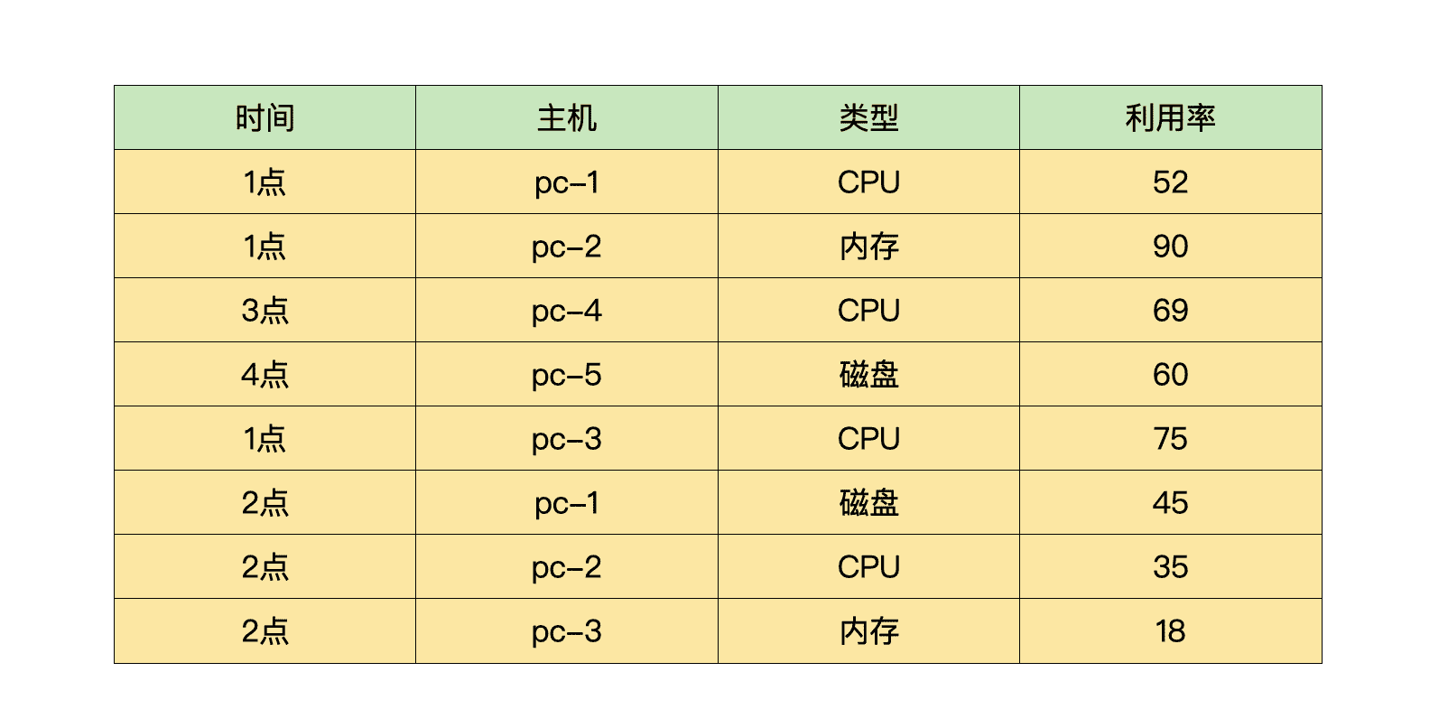 数据表中包含了1点-4点,一共5台计算机的CPU、内存、磁盘利用率,如果把数据交给你,你能从中分析出哪些有趣的结果呢?