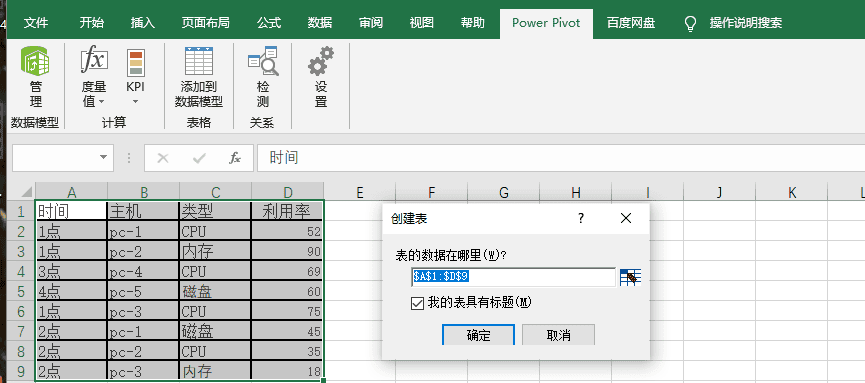 我给你举一个调整好格式的例子,帮你理解数据透视表能支持的数据明细的格式。比如刚才的计算机利用率的表格,假设“pc-1”这台计算机的利用率明细表中包含“CPU”、“磁盘”和“内存”的利用率数据,如果你需要使用数据透视表,则必须为它建立“类型和利用率”两个列,并把“类型和利用率”作为表头。