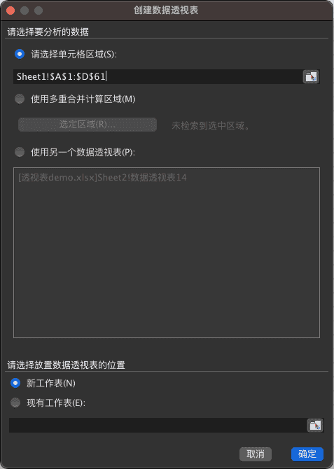 这两个选项一般保持默认即可。同时,我也把创建透视表的截图放在下方,供你参考。
