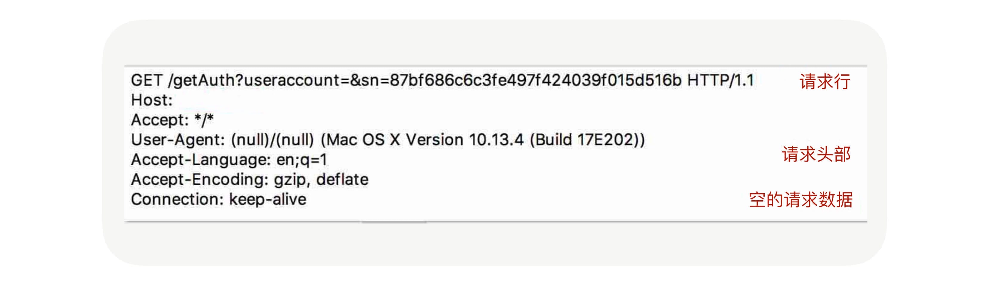 所以我们今天要讲的RPC协议就是围绕应用层协议展开的。我们可以先了解下HTTP协议,我们先看看它的协议格式是什么样子的。回想一下我们在浏览器里面输入一个URL会发生什么?抛开DNS解析暂且不谈,浏览器收到命令后会封装一个请求,并把请求发送到DNS解析出来的IP上,通过抓包工具我们可以抓到请求的数据包,如下图所示: