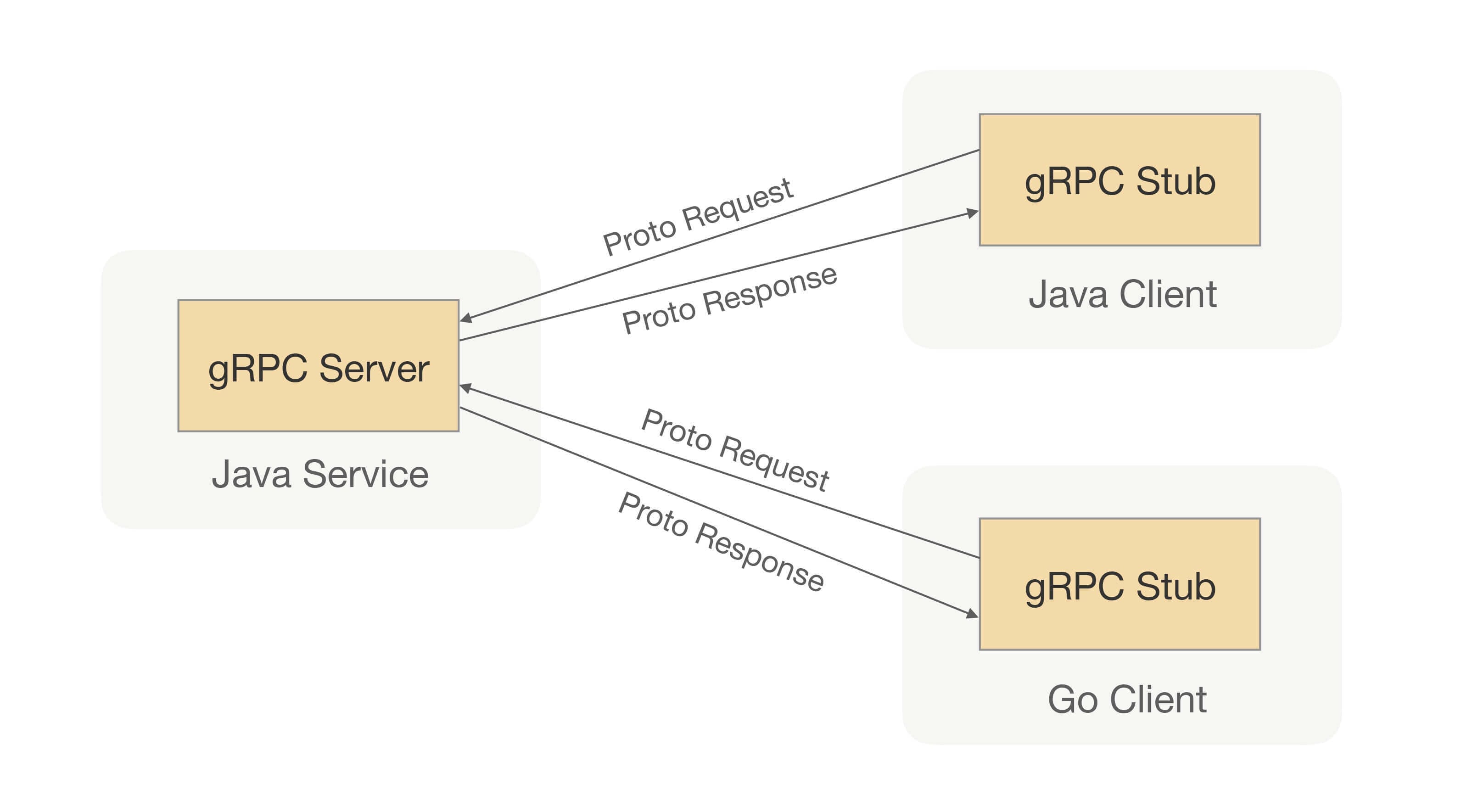 gRPC 是由 Google 开发并且开源的一款高性能、跨语言的 RPC 框架,当前支持 C、Java 和 Go 等语言,当前 Java 版本最新 Release 版为 1.27.0。gRPC 有很多特点,比如跨语言,通信协议是基于标准的 HTTP/2 设计的,序列化支持 PB(Protocol Buffer)和 JSON,整个调用示例如下图所示: