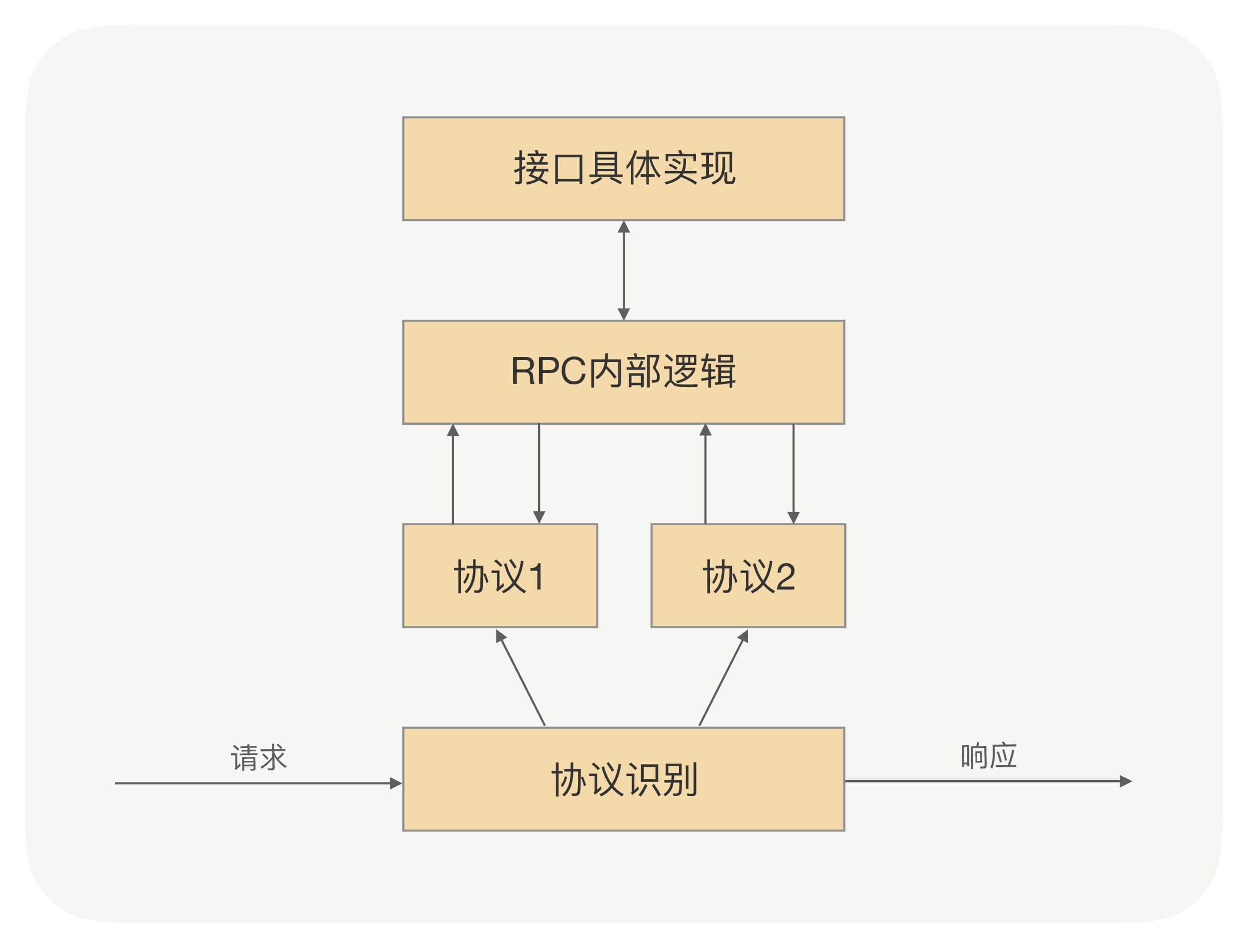 在我们日常开发的过程中,最难的环节不是从0到1完成一个新应用的开发,而是把一个老应用通过架构升级完成从70分到80分的跳跃。因为在老应用升级的过程中,我们不仅需要考虑既有的功能逻辑,也需要考虑切换到新架构上的成本,这就要求我们在设计新架构的时候要考虑如何让老应用能够平滑地升级,就像在RPC里面支持多协议一样。